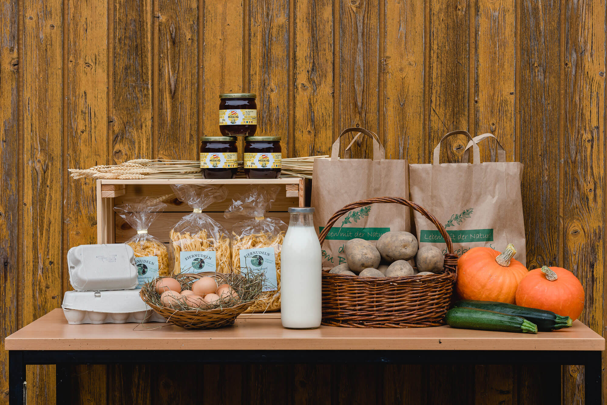 Weitere Produkte sind in unserem Hofladen meist saisonbedingt erhältlich, so bekommt man beispielsweise im Sommer Zucchini, im Herbst Kürbisse, Honig von unserem Imker Stefan Hangl und – wenn die Ernte im Obstgarten reichlich war – diverse von Bäuerin Magdalena hausgemachte Marmeladen. Ein Besuch im Hofladen lohnt sich deshalb immer!